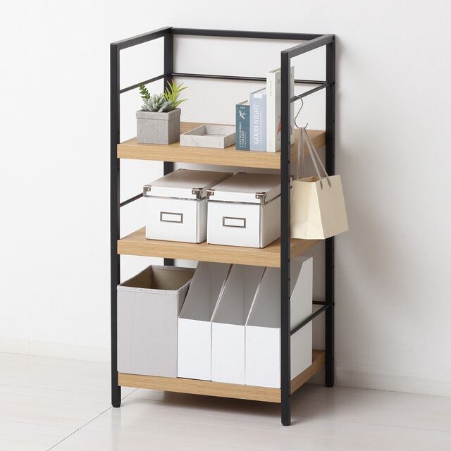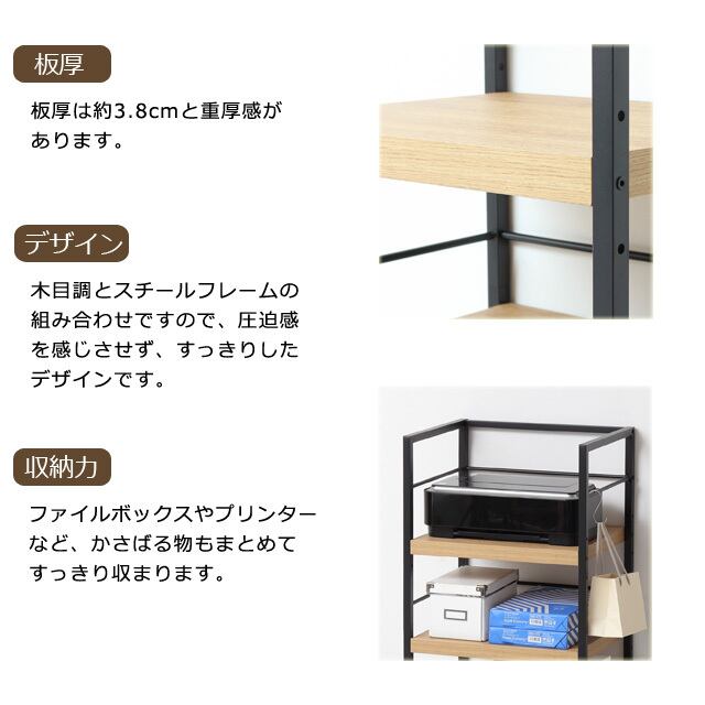 ●木目調とスチールフレームの組み合わせですので、圧迫感を感じさせず、すっきりしたデザインです。