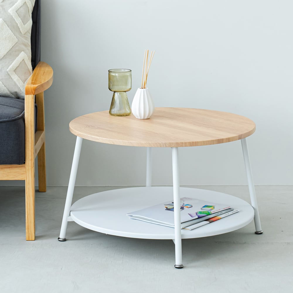雑誌やリモコンなどが収納できる便利な棚付き。