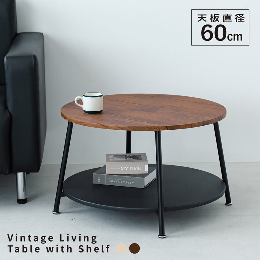 ヴィンテージ棚付リビングテーブル モダン/木目/木/ミッドセンチュリー/レトロ/デスク/机/カフェ