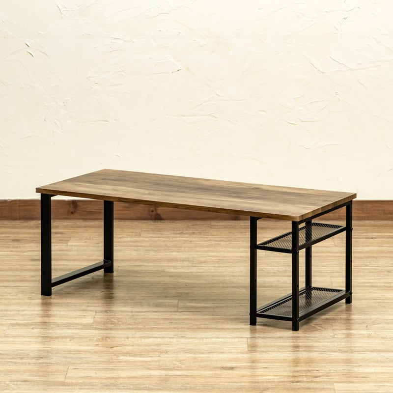 スチール脚と木目調天板を組み合わせた、アンティークな風合いのセンターテーブルです