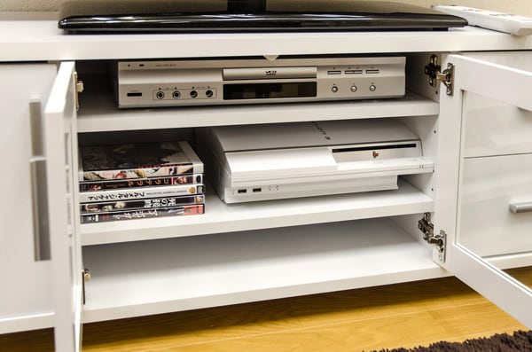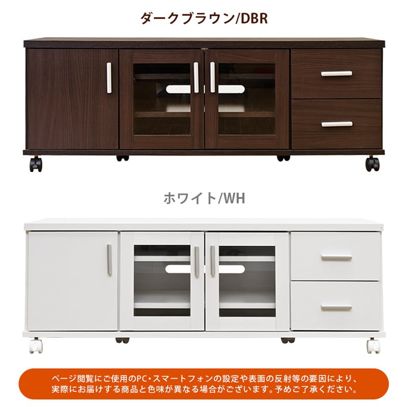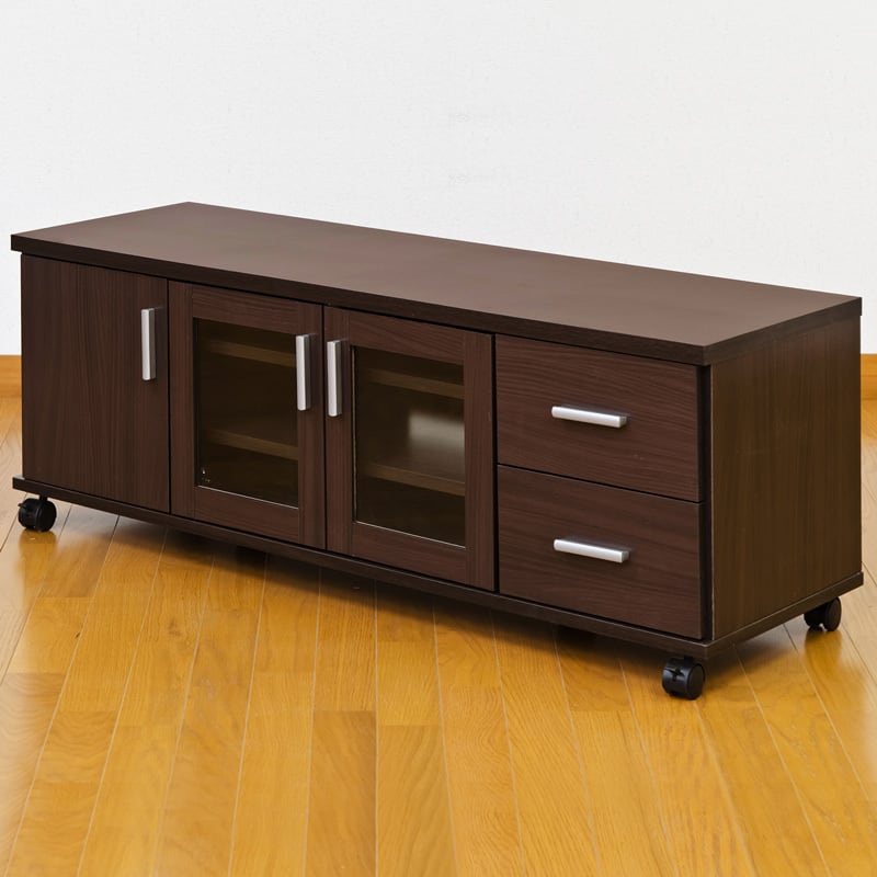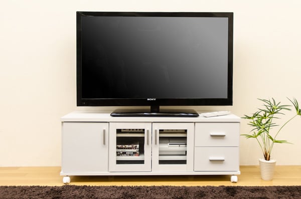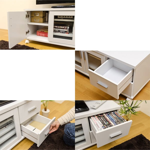 サイドは扉収納と引出し収納、中央はガラス観音扉になっています