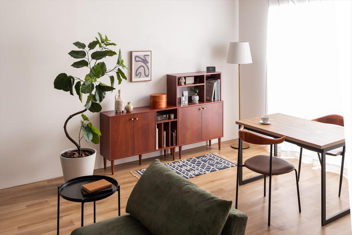 空間に溶け込み、暮らしを上質に彩る本棚付きキャビネット