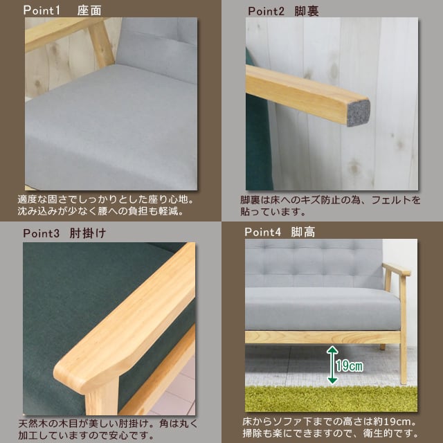 キーワード:二人用ソファーおしゃれ天然木オスロ