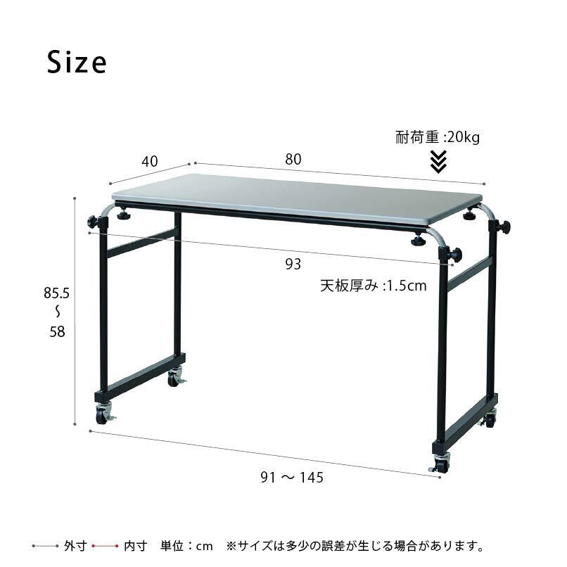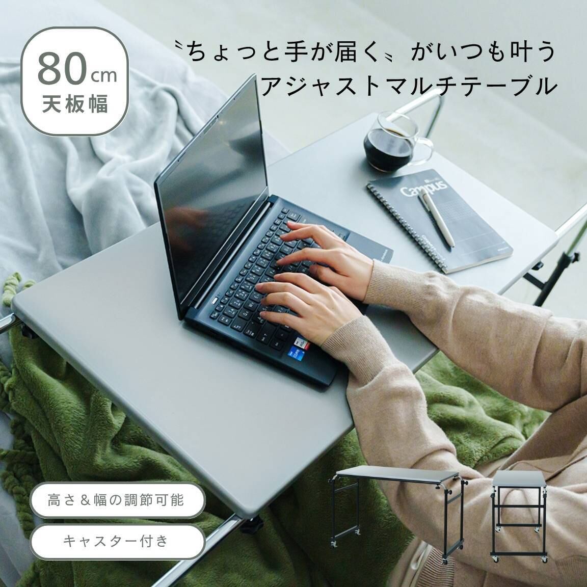 アジャストマルチテーブル ルーモ GY ベッドテーブル PCテーブル 昇降式 キャスター デスク 高さ調節 木目