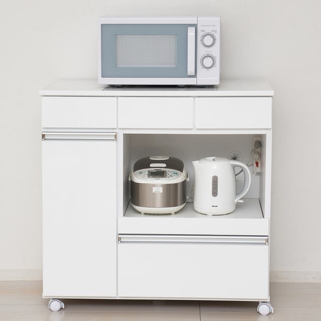 ●スライド棚付きで、蒸気の出る炊飯器やケトルの使用に便利です。