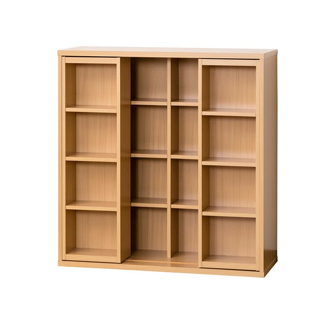 後ろの棚の本も取り出しやすい、全面スライド式。CD・DVD・コミックが、大容量に収納できる!