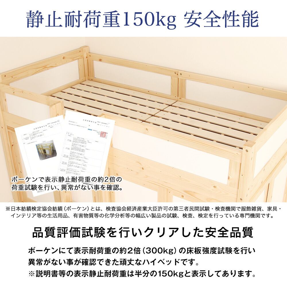 一般的なロフトベッドよりも低めのつくりとなっており、はしごはひっかけ式ではなくベッドに固定されているため、昇降もあんしんです。