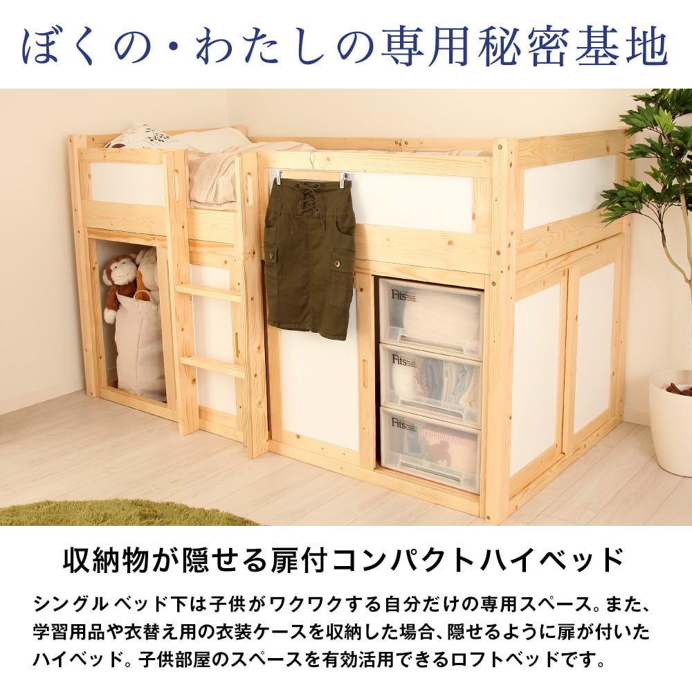 ぼくの・わたしの専用秘密基地。収納物が隠せる扉付コンパクトハイベッド。