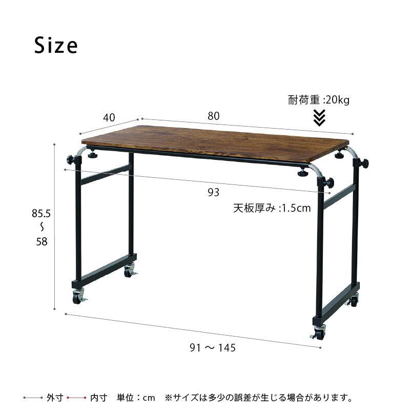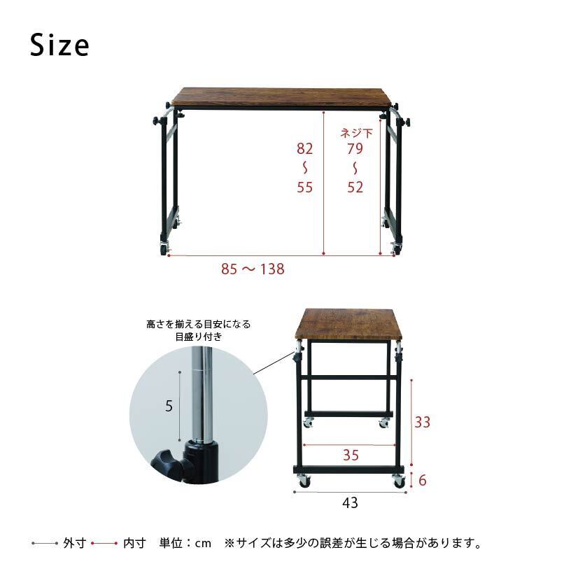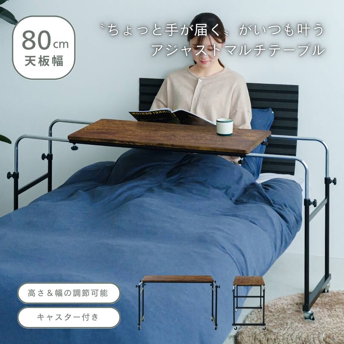 アジャストマルチテーブル ルーモ WD ベッドテーブル PCテーブル 昇降式 キャスター デスク 高さ調節 木目