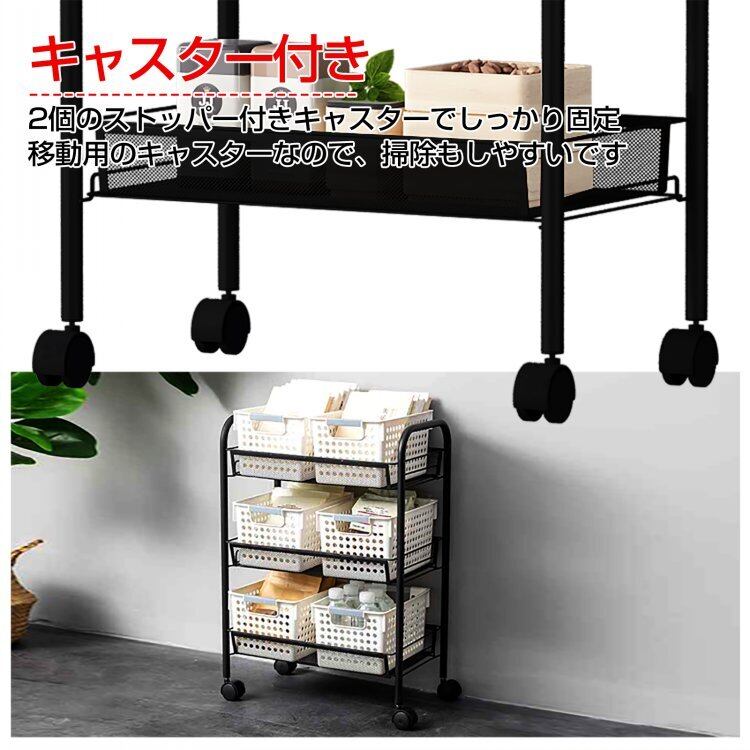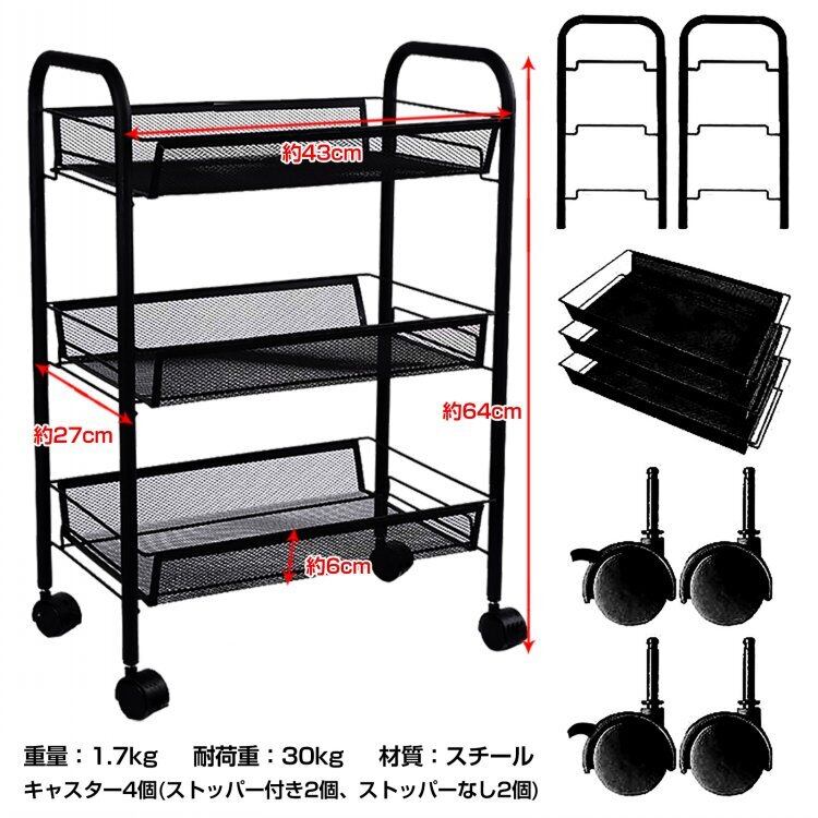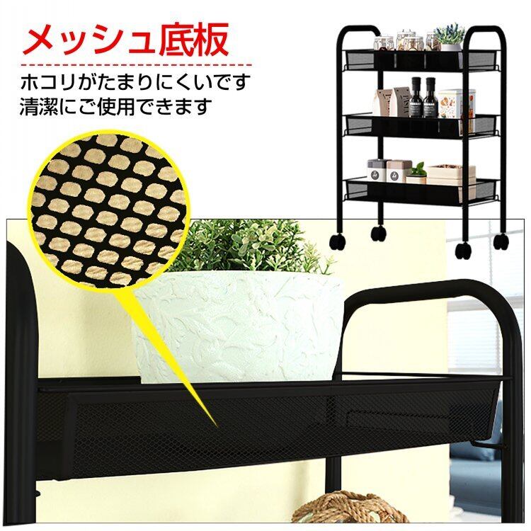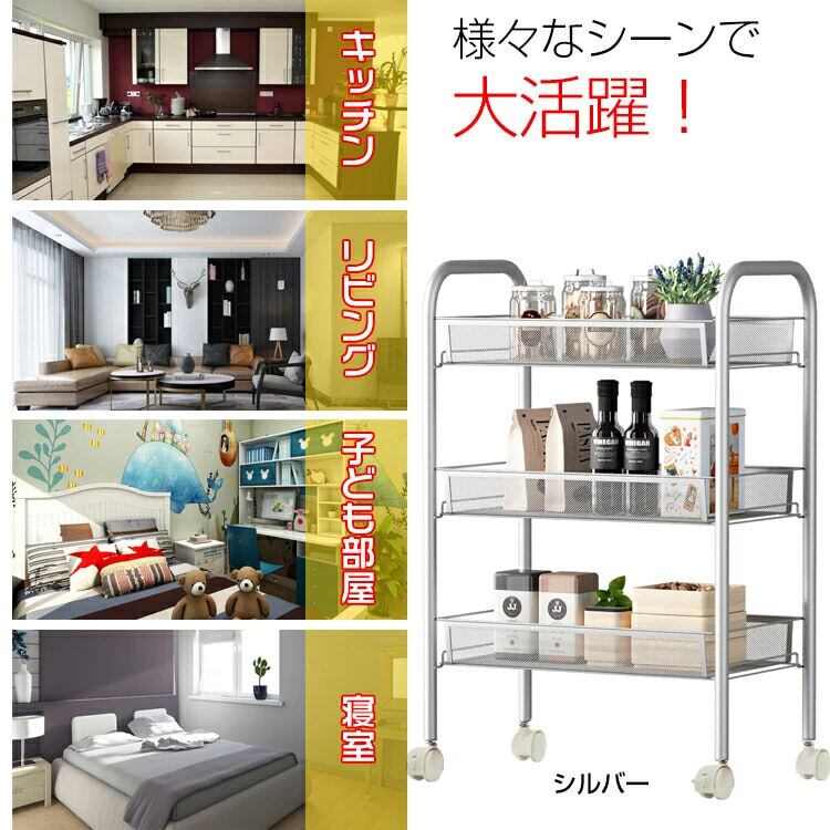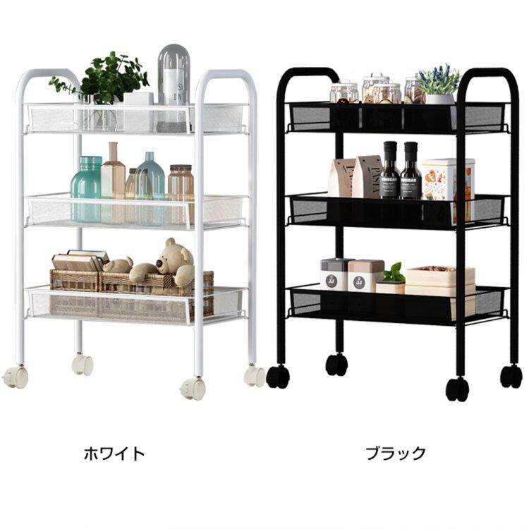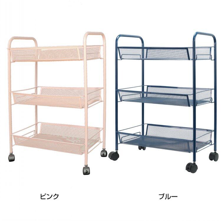 キッチンワゴン キャスター付き 3段 カート メッシュ バスケット スチール ラック メタル