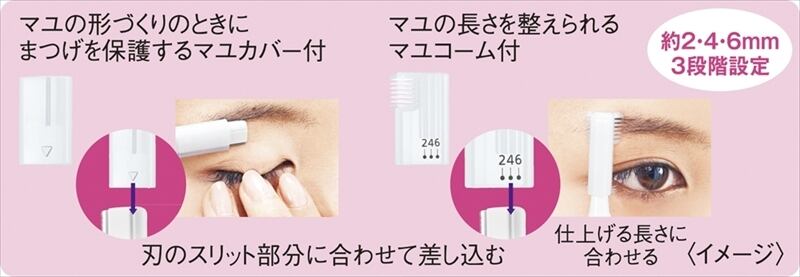 細かいウブ毛もすっきりシェービング。メイクのり、持ちのよいスベスベ肌へ。厚み約0.12mmのうす刃で根元からカットします。・ウブ毛、眉メイク用
