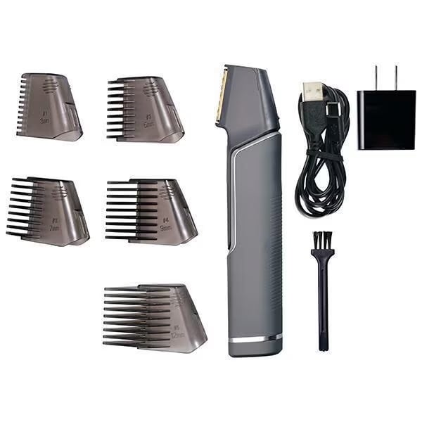 ブラッシングするだけで簡単セルフカット。・5種類のサイズアタッチメント付きで、好みの長さに簡単カット・軽くて錆びにくいチタンコーティング刃使用・充電式(AC・USB)・ヘッドの長さ調節可能