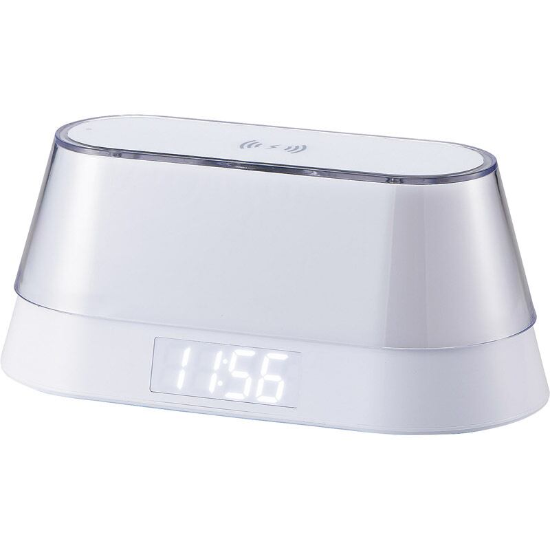 ワイヤレススピーカー、ワイヤレス充電、ナイトライト機能の付いた便利な多機能クロックです。・ワイヤレススピーカー、ワイヤレス充電、時計、アラーム、スヌーズ、ナイトライト(7色)、アラーム連動ウェイクアップライト※ワイヤレス充電は一部の機種ではご利用いただけない場合がございます
