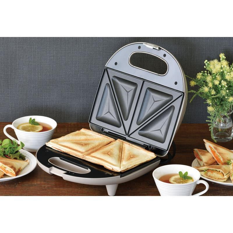 キッチンに溶け込む落ち着いたカラーのホットサンドメーカー。ホットサンドとワッフルのプレート付きです。