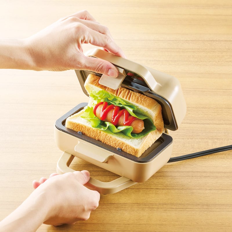 1枚の食パンを折りたたんで作る「ハーフホットサンド」ができる電気ホットサンドメーカー。